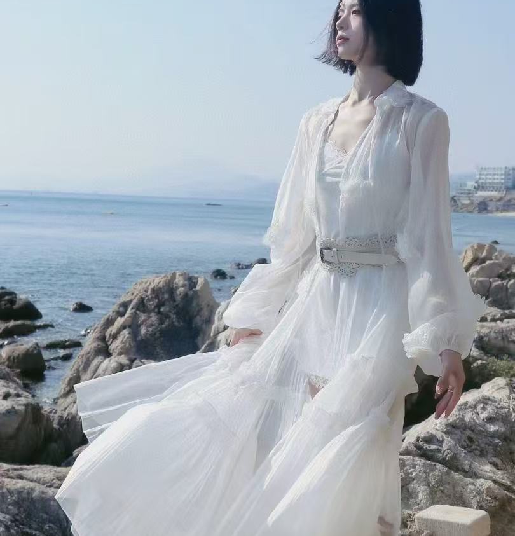 White is a soothing and refreshing color. In summer, it pairs beautifully with blue skies and white clouds, making it a perfect choice for a relaxing vacation.
